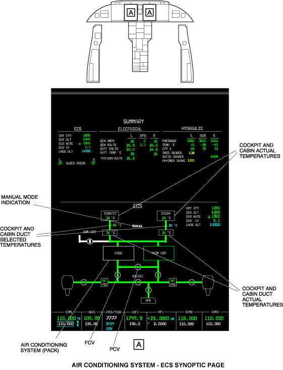 - The temperature indication in each box, with the legends COCKPIT and CABIN, are actual zone temperatures which are measured by the flight-compartment VENTSs