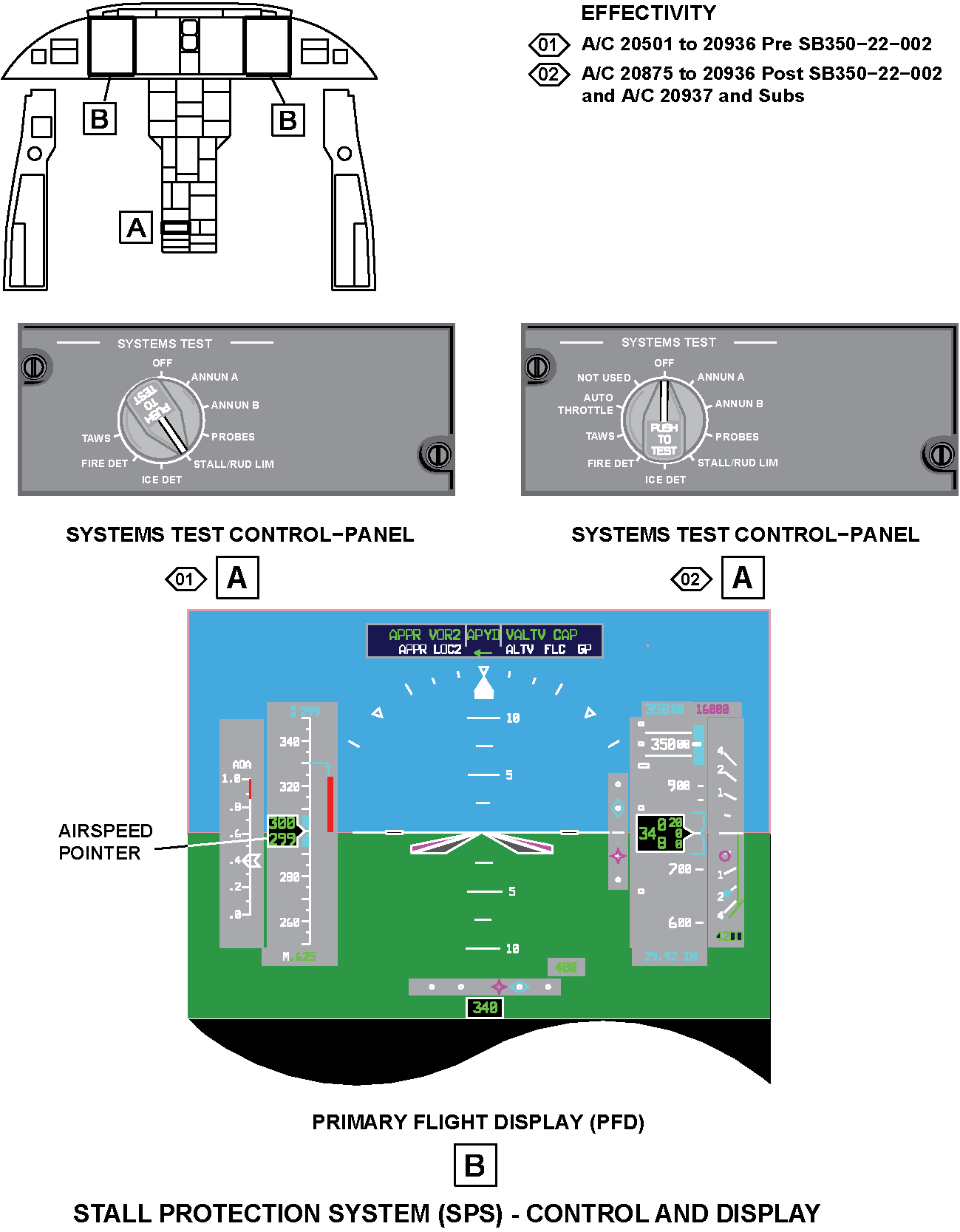 The stall protection system (SPS) supplies protection to the aircraft to prevent high levels of angle-of-attack. A high level angle-of-attack can cause the aircraft to go into a stall condition.