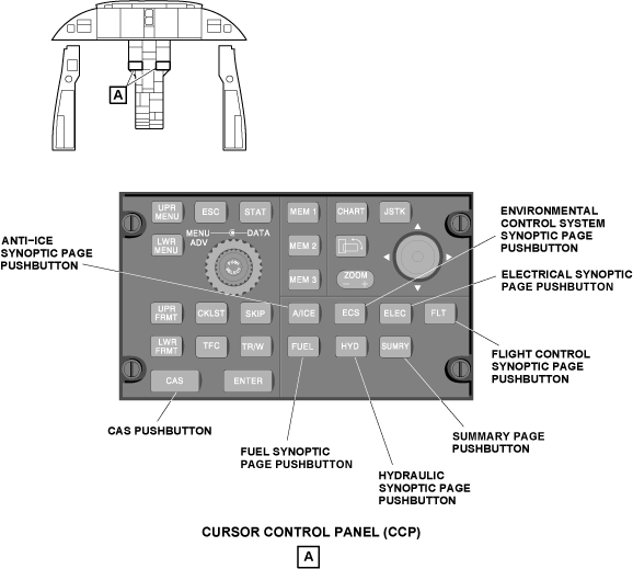 When the CAS push button on the CCP 1 or CCP 2 is pushed, it shows the subsequent page of CAS messages on MFD 1 or MFD 2. Each push will show the subsequent page of CAS messages.