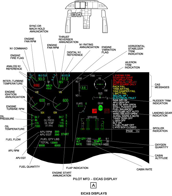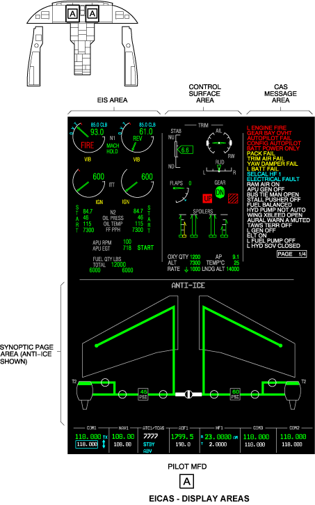 The EICAS gives data on what is shown on the display unit and where it is shown. Only general data is given in the EICAS. Data about the specific conditions and colors are given in the related sections of each system.