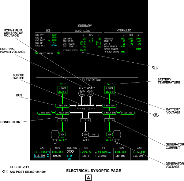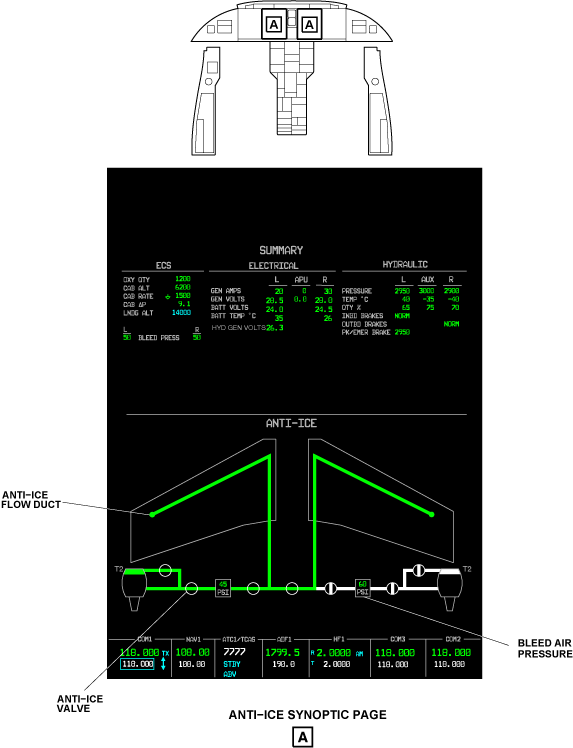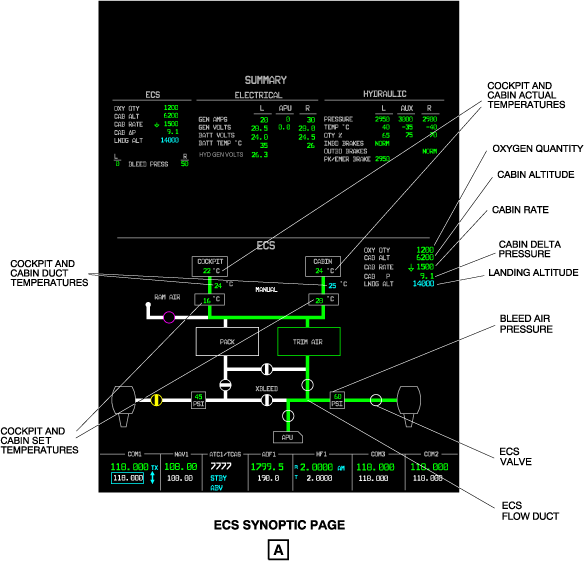 The bottom half of the two MFD can show synoptic pages.