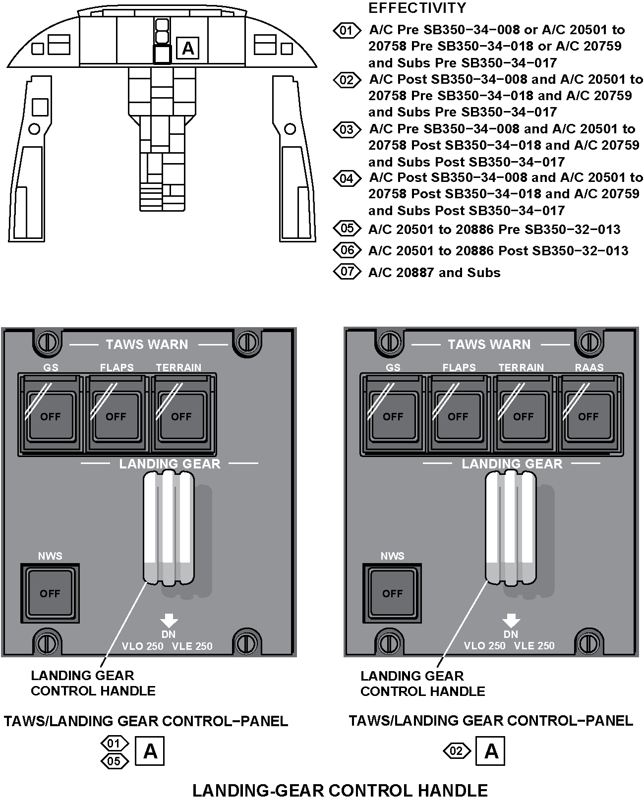 | S125 | LANDING-GEAR CONTROL HANDLE | ZONE(S) 210 | 32-31-13 |