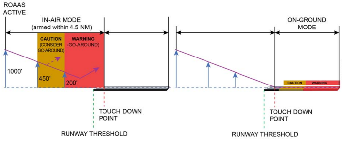 ROAAS is automatically armed during the approach and is comprised of two modes of operation: