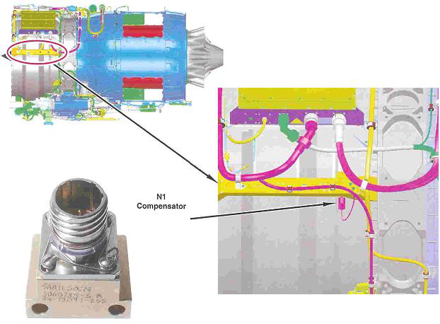 From To Value W6P6 Pin A W6P6 Pin B 2.5 to 15 kΩ W6P6 Pin C W6P6 Pin D 2.5 to 15 kΩ If good, check at the ECUs W6P3 Pin 25 W6P3 Pin 36 2.5 to 15 kΩ W6P2 Pin 25 W6P2 Pin 36 2.5 to 15 kΩ - If the resistance values fail at the N1 compensator, replace IAW Honeywell LEMM TASK 77-10-03-050-801. If the resistance values check good at the sensor and not at the ECU, suspect the W6 or W4 wiring harness, isolate by ringing individual wires and replace per the Honeywell LEMM TASK 76-10-01-050-801.