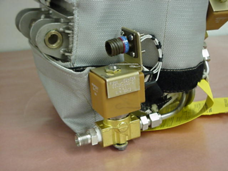The humidifier water shutoff valve (HWSOV) supplies water from the on-board potable water system to fill the boiler. It is a solenoid valve that is spring-loaded closed and requires 28 VDC from the humidifier control unit to open. It also includes a restrictor at its inlet to limit the incoming water.