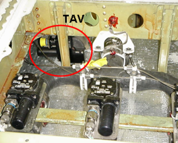 The TAV is a 1.5 inch diameter butterfly valve with aluminum body, driven by an electrical actuator. Full closed and full open positions are monitored by microswitches (note that Full Open switch is set for a physical mid-open position). The valve is directly mounted on the trim air ducting downstream the ECS HASOV and hot air check valve, and upstream the three ways fork separation.