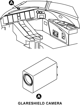 The glareshield camera is a compact color video camera that provides outside views from the cockpit glareshield through the windscreen. The glareshield camera is a forward-looking camera located in the cockpit glareshield. It is a color zoom camera with a 46 degrees wide field of view. Power required is 28 VDC, 12 watts maximum. It is powered by 28 VDC from the CES cabin power distribution system via DCPDE No. 5 and the zoom functionality is controlled by the CES cabin management system via the MCE No. 2.