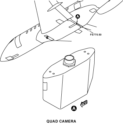 A quad camera providing four directions is located in the aircraft aft belly fairing. The quad camera comes in 2 variants. One variant comes with color views for the forward and aft cameras with a 31 degrees wide field of view. The left and right cameras have grey scale views with 115.5 degrees wide field of view. Power required is 12 VDC, 16 watts maximum. The other variant has color views in all four directions. Also, the Left and Right camera have 88 degrees wide field of view.