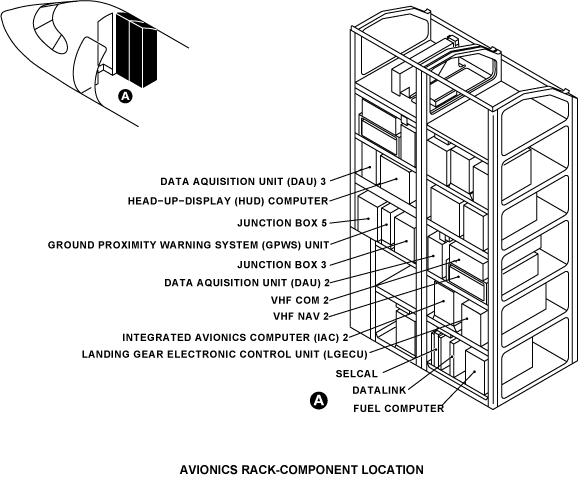 The avionics rack located on the right hand side aft of the cockpit bulkhead contains trays for the installation of avionic units and components.