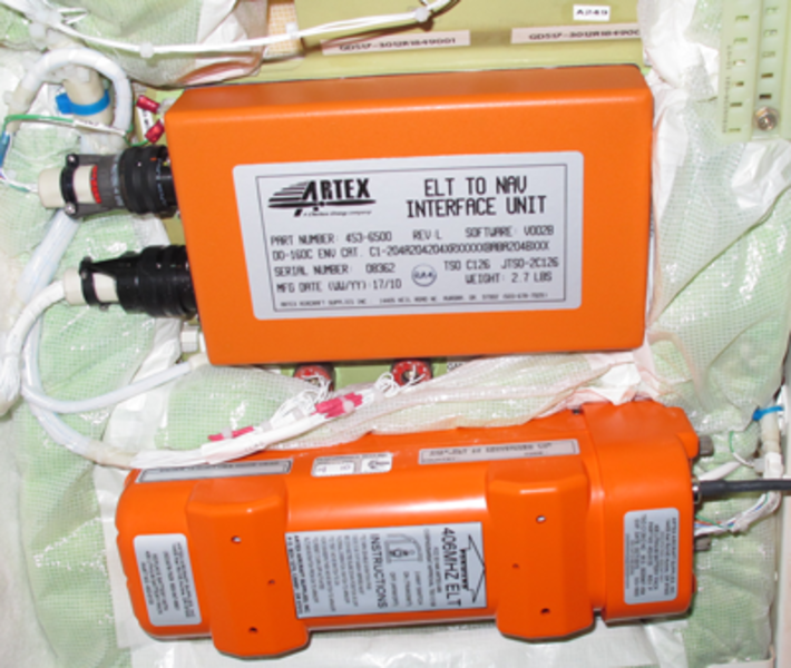 In addition to the basic emergency locator transmitter system aircraft interfaces, the ELT/NAV interface unit is provided with FMS (latitude and longitude) navigational system data via ARINC 429 from the IAC 1 unit and converts to positional data the ELT can recognize and transmit. The ELT/NAV interface unit has a dedicated 28 VDC supplied by the SPDA no. 2 DC bus no.1.