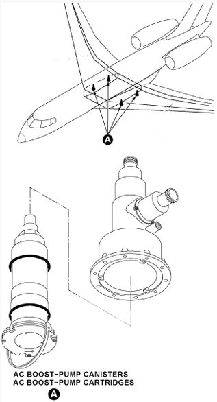 All pumps are standard canister/cartridge-type design. It can be replaced without defueling the tanks through access panels provided on the wing bottom surface.