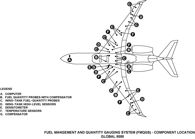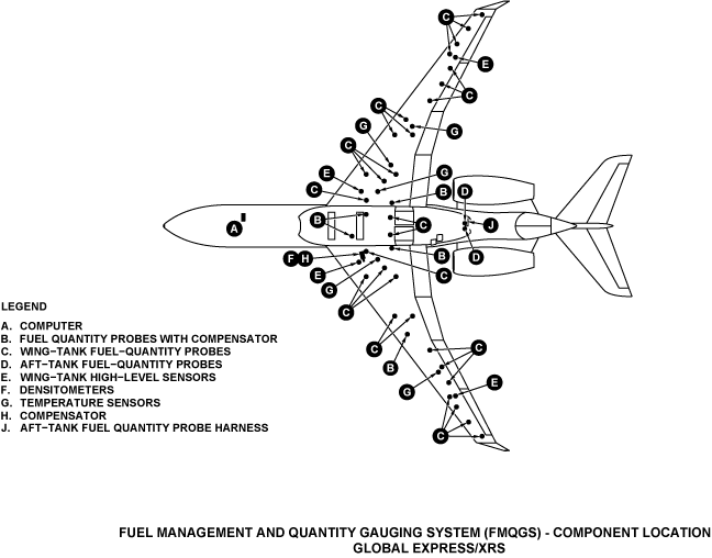 The fuel management and quantity gauging system (FMQGS) controls and monitors the operation and flow of fuel in the fuel system. The FMQGS operations include the fuel quantity, temperature, pressure, and density.