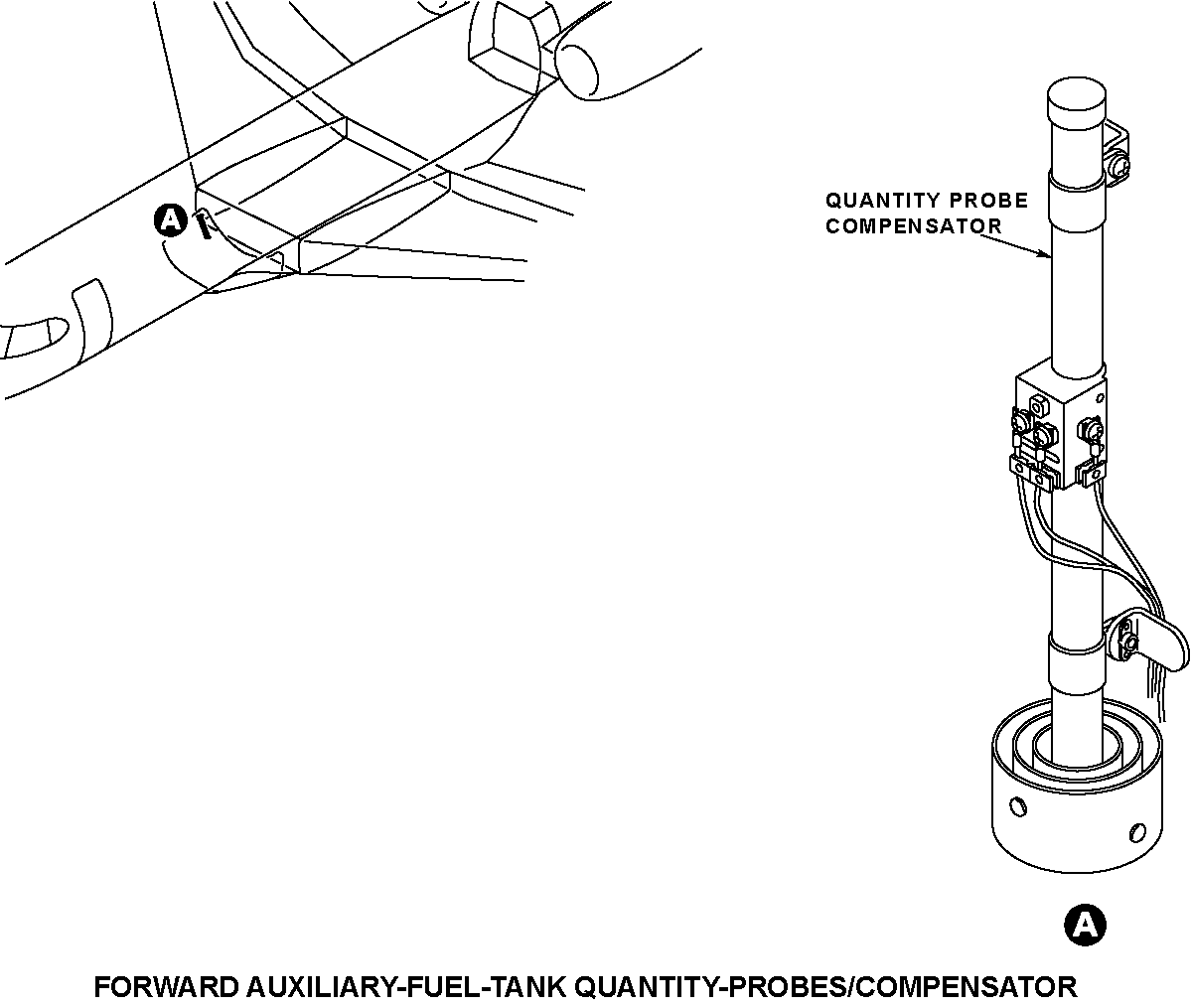 The wing-tank fuel-quantity probes measure the quantity of fuel in the fuel tanks. There are a total of 15 quantity probes on each side. There are 14 quantity probes plus one quantity probe with compensator in the left wing tank. There are 13 quantity probes plus two quantity probes with compensators in the right wing tank. There are two fuel quantity probes in the center tank.
