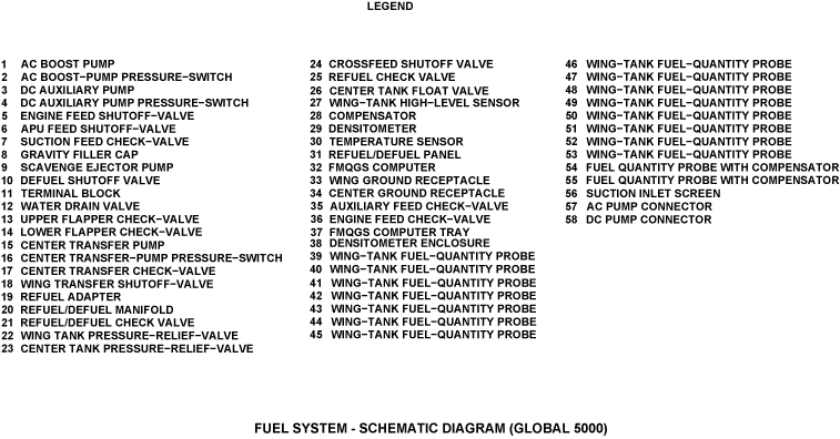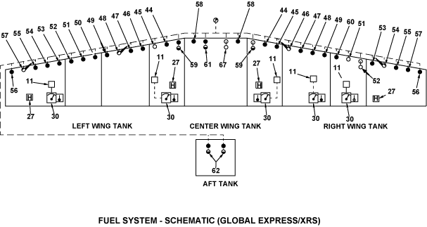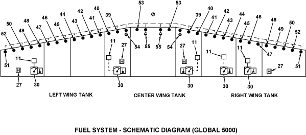 Aircraft fuel is contained in a wet wing box structure sealed to form three separate tanks (left wing, center and right wing), with smaller quantities carried in separate forward or aft tanks. The Global 5000 does not have a forward or aft tank. The forward tank is available on A/C 9003 and 9096 for Global Express and after A/C 9159 for Global XRS.