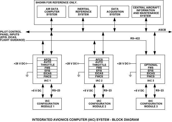 The integrated avionics computer (IAC) system operates as the central controller for other independent avionics systems. These systems supply the functions that follow: