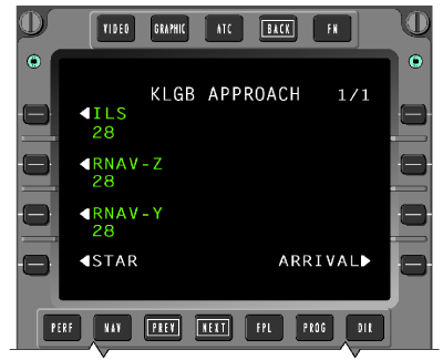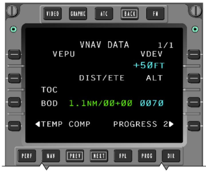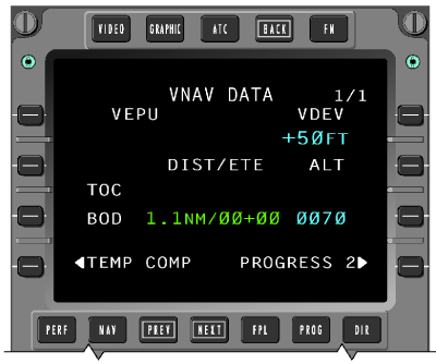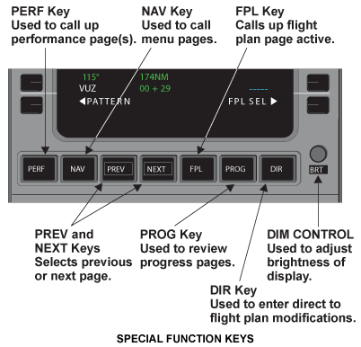 Four line select keys are on each side of the CRT. Five function keys allow direct access to specific pages. A manual dimming knob provides long-term dimming adjustments, while ambient light sensors provide display brightness adjustments under varying cloud/sunlight conditions.