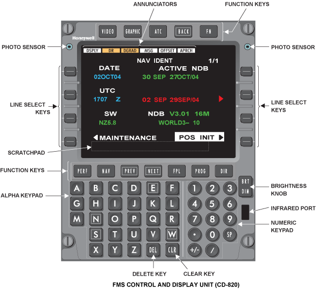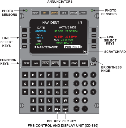 The FMS CDU is the interface to the FMS processor in the (IAC). A menu system and multiple display pages allow interface to the various FMS modes of operation.
