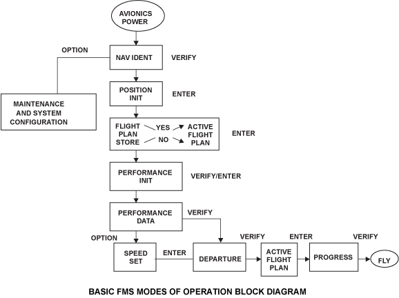One of the FMS tasks is to navigate the aircraft along a predefined flight plan. The FMS receives navigation data from short-range and long-range sensors and chooses the sensors providing the most accurate aircraft position. The priority of the navigation modes is as follows: