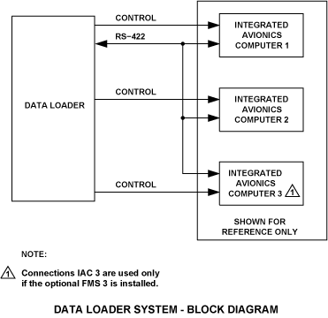 The on-board data-loader system puts the navigation data and the flight plans into the navigation computer of the IAC 1 and 2. If the third optional flight management system (FMS) is installed, the on-board data-loader system also puts the navigation data and the flight plans into the navigation computer of the IAC 3. The system also copies the data kept in the navigation computer to removable media.