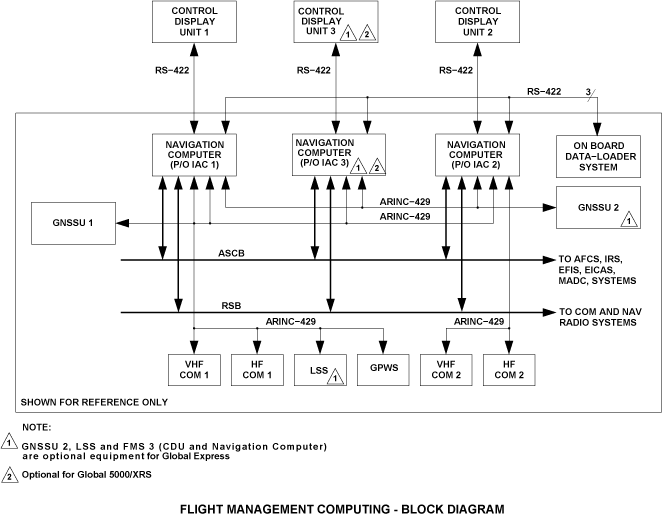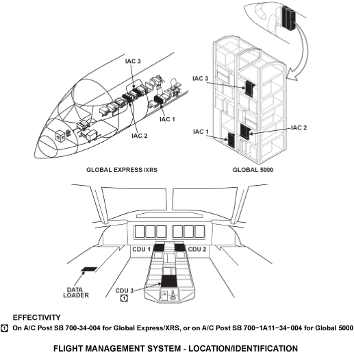 The FMS navigation computer is part of the IC-800 IAC. In the Global, IAC 1 and 2 are configured with a navigation computer, but in IAC 3, a navigation computer is an option.