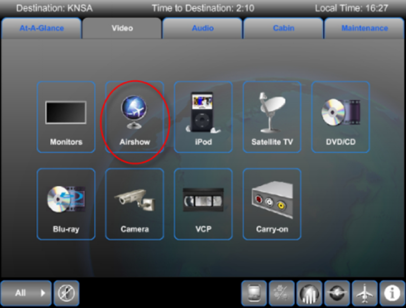 The airshow interactive application provides a moving map display and access to the airshow network.