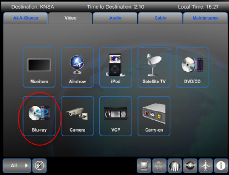 This option installs Blu-Ray player(s) in the aircraft. HD quality videos can only be displayed on bulkhead monitors. The component video output (Pr/CR, Y, Pb/CB) of the Blu-Ray player is divided by video splitters to supply a number of monitors simultaneously.