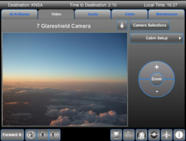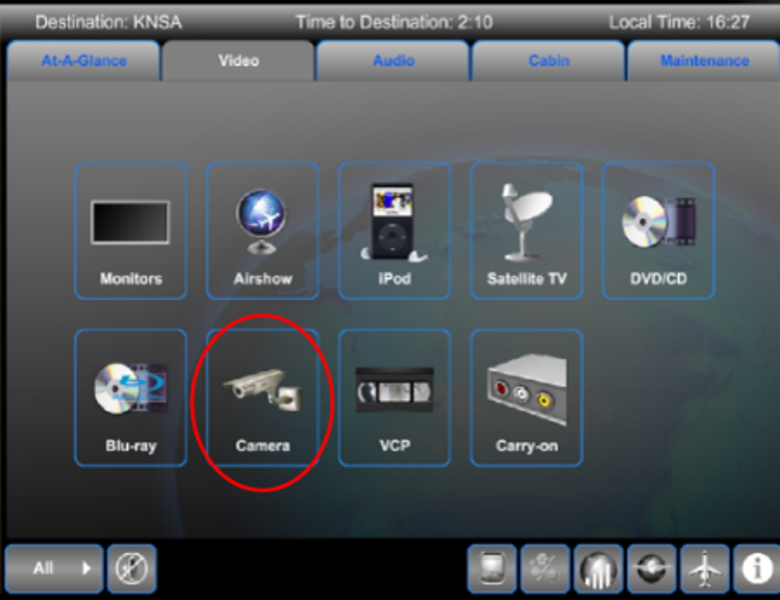 Camera views are available for viewing on all of the bulkhead monitors, the EFBs, and TSEs.