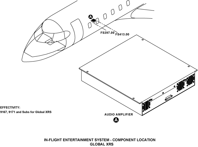 The cabin audio distribution system consists of an audio amplifier which drives sub-woofers, mid-range speakers, and tweeters.The audio amplifier is a 4Ω units. It is powered by the ACPDE 4. The audio content from the entertainment source equipment is fed to the ZDE which conveys the audio content to the audio amplifier. The amplifier amplifies the content and sends the ouput to the cabin speakers.