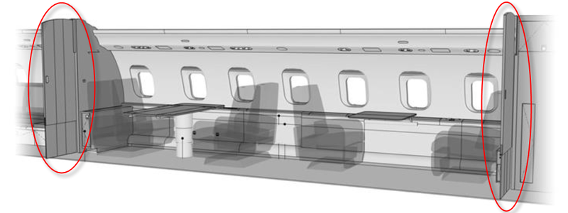 Each cabin pocket door is electrically locked by an electrical latch actuator, 28 VDC powered by the Cabin Management System (CMS).