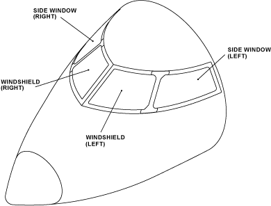 The pilot’s and copilot’s windshield and side window panels do not attach to each other. An external strap attaches the windshield and side window to a set post. You can fully remove the external strap from each panel and from the aircraft. A side strap attaches the windshield to the side window and to a set post.