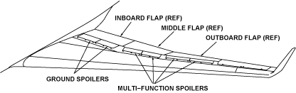 There are four multifunction spoilers on each wing. Two multifunction spoilers are installed on the top surface of the trailing edge of each wing above the middle flap. Two more multifunction spoilers are installed on the top surface of the trailing edge of each wing above the outboard flap. The multifunction spoilers supply roll control to help the ailerons during landing of the aircraft. They are also used to prevent lift when the aircraft is in flight. When the aircraft is on the ground, the multifunction spoilers are used like the ground spoilers to prevent lift. The multifunction spoilers can also be used as speed brakes.