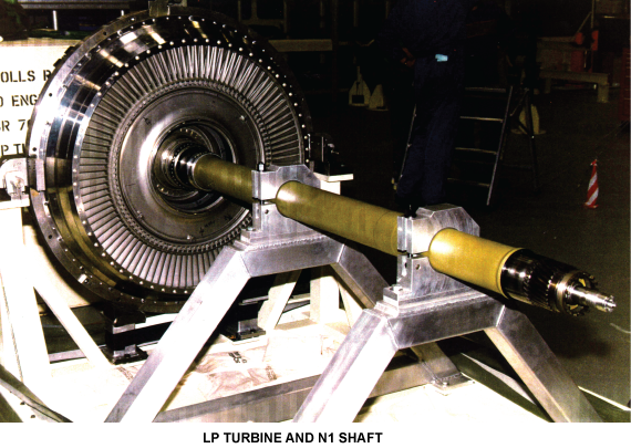 The module comprises a two-stage LP turbine, the LP turbine shaft, an outer casing which supports the second-stage LP NGVs, and the LP turbine (no. 5) bearing. A central signal tube provides a reference signal to the LP turbine shaft breakage sensing mechanism located aft of the bearing chamber.