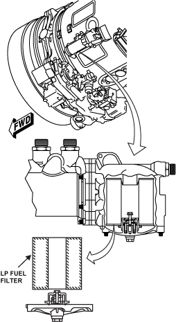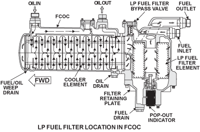 It has a 10-micron filter (which cannot be cleaned) and is a line replaceable unit (LRU). If the fuel pressure across the filter increases to 25 psi (172.37 kPa), the fuel bypass valve opens to let the fuel flow continue to the HP fuel pump.