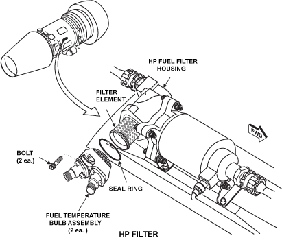 The HP filter prevents any foreign objects debris (FOD) downstream of the LP filter from being passed into the fuel manifold and causing possible blockage of the fuel spray nozzles. The HP filter has no bypass provisions and continued accumulation of FOD will result in complete blockage of fuel through the filter.