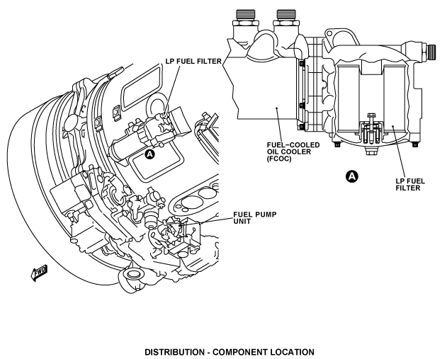 The fuel distribution system gives fuel to the core engine for combustion, and supplies it to give servo pressure for specified engine units.