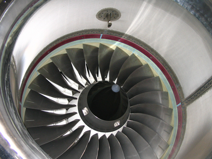 The centrifugal force at the rear of the spinner releases collected ice. The inner diameter of the fan case has a glass-fiber ice-impact box at a position where the released ice hits. This breaks the ice into small pieces. Also, the spinner point is a soft rubber which twists during engine running to release the collected ice.