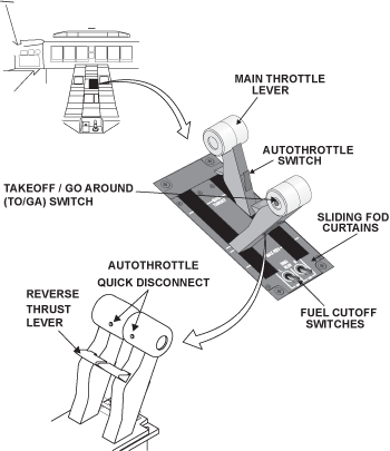 Forward thrust and reverse thrust are set with the throttle lever assembly and controlled with the electronic engine controller (EEC). The selection for an emergency shutdown of the engine is done with the fire handles.