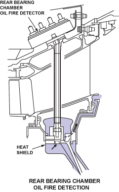 One other system uses an isolated thermocouple unit to sense cooling air temperature around the rear bearing chamber. If the temperature increases too much, a warning shows on the EICAS.