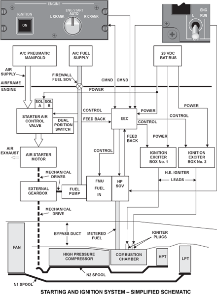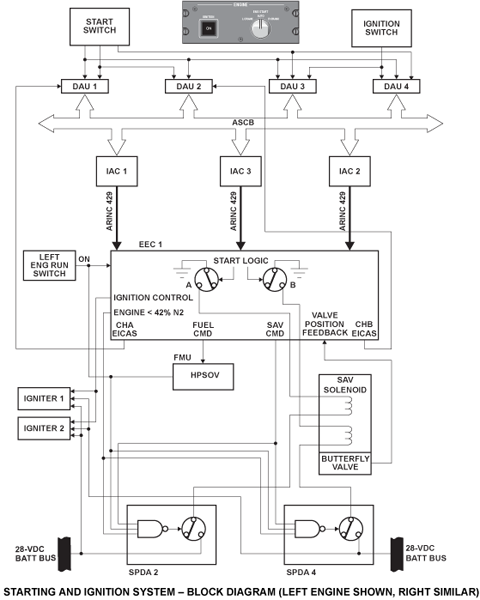 - The EEC reroutes ignition power to both ignition exciters of the engine being started. The IGN icon of that engine appears