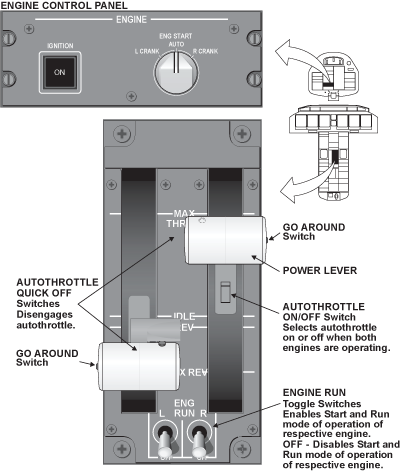 - An IGNITION PBA and an ENG START switch on the Engine Start module of the overhead panel