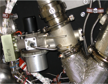 A V-band clamp and dowel attach the starter to the adapter on the gearbox. A V-band clamp is used to attach ducting to the starter.