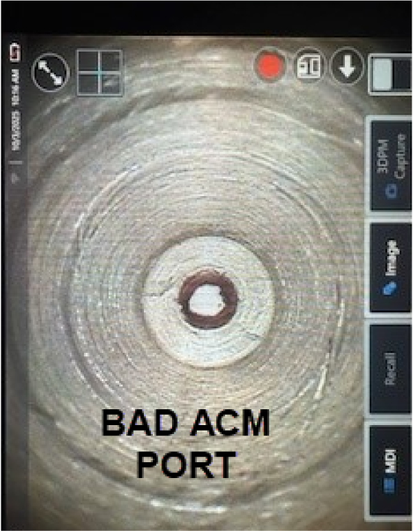 - Inspect ACM PDPS port for obstruction. The opening should be round.