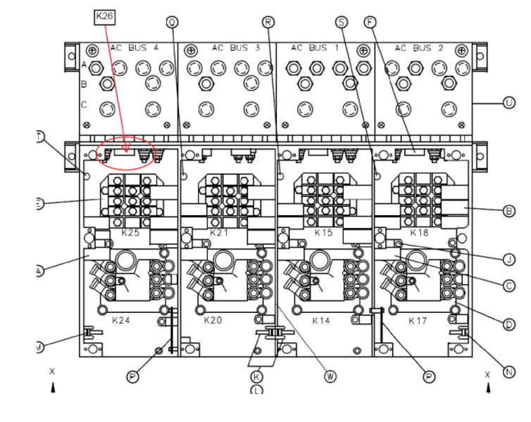 - Check K26 output (A2/B2/C2) and make sure all the three phases are not shorted to ground