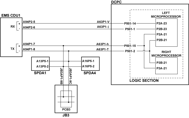 - Perform wiring checks between EMS CDU, JB3, SPDA 1, SPDA 2 and DCPC.