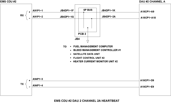 - Perform wiring checks between the EMS CDU 2, JB4 and DAU 2.