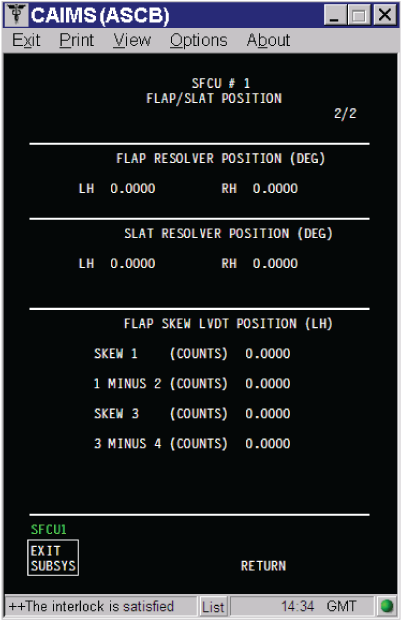 - Monitor the flaps resolvers in CAIMS and confirm that the left and right resolvers on both SFCUs are reporting the same position.