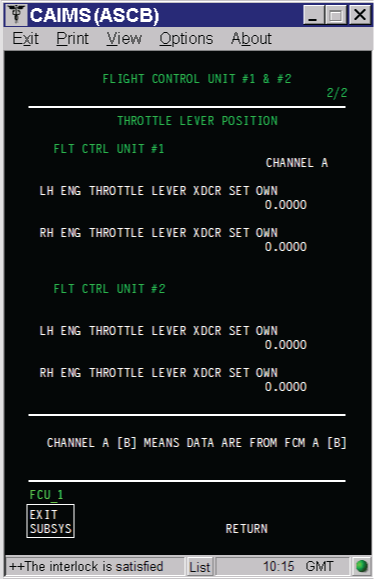 | Reporting LRU: | Flight Control Unit (FCU) |