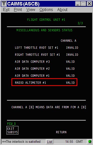 | Reporting LRU: | Flight Control Unit (FCU) 1 |
