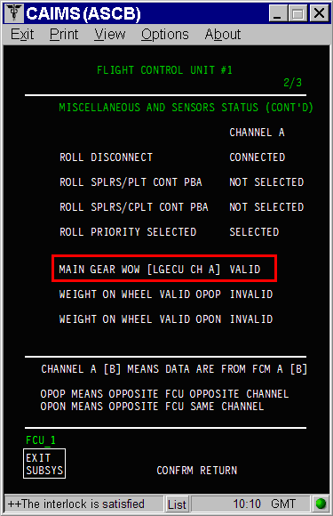 | Reporting LRU: | Flight Control Unit (FCU) 1 |