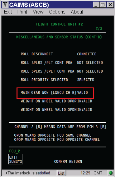 | Reporting LRU: | Flight Control Unit (FCU) 2 |